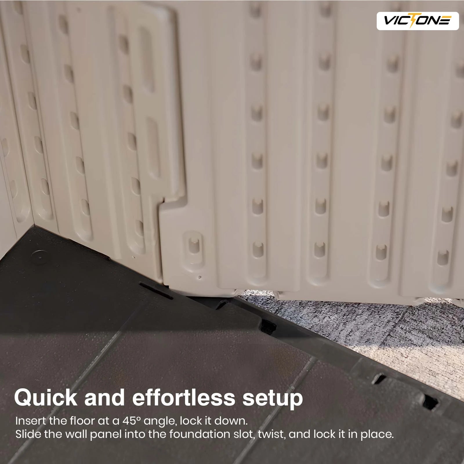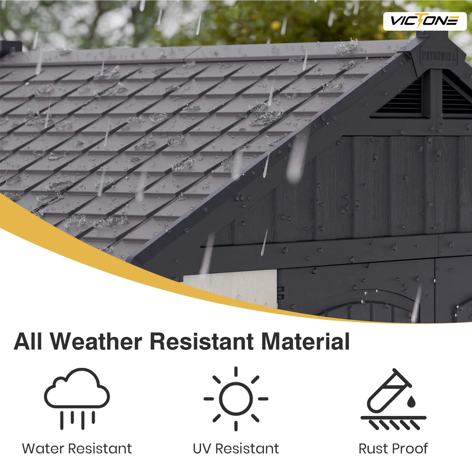 Recyclable And Durable Material: Made from recyclable materials, this storage shed is designed to be both lightweight and durable. Beige wall and gray roof are more beautiful and fashionable.