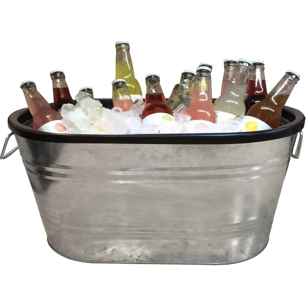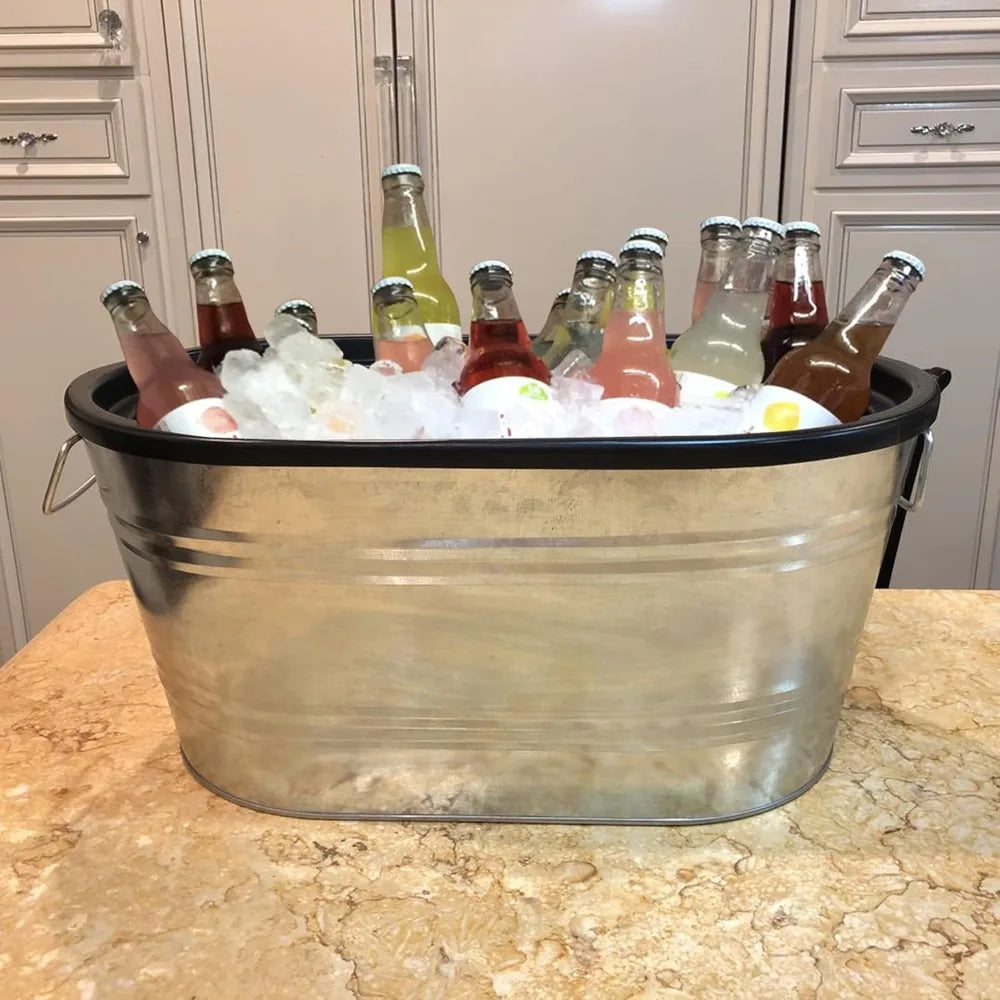 Stylish look for Parties – Will hold multiple drinks with ease. Shiny tin creates an upscale look. Black liner ensures this is absolutely water tight. The container is lightweight easy to carry. The handles are sturdy even when fully filled with ice and drinks.